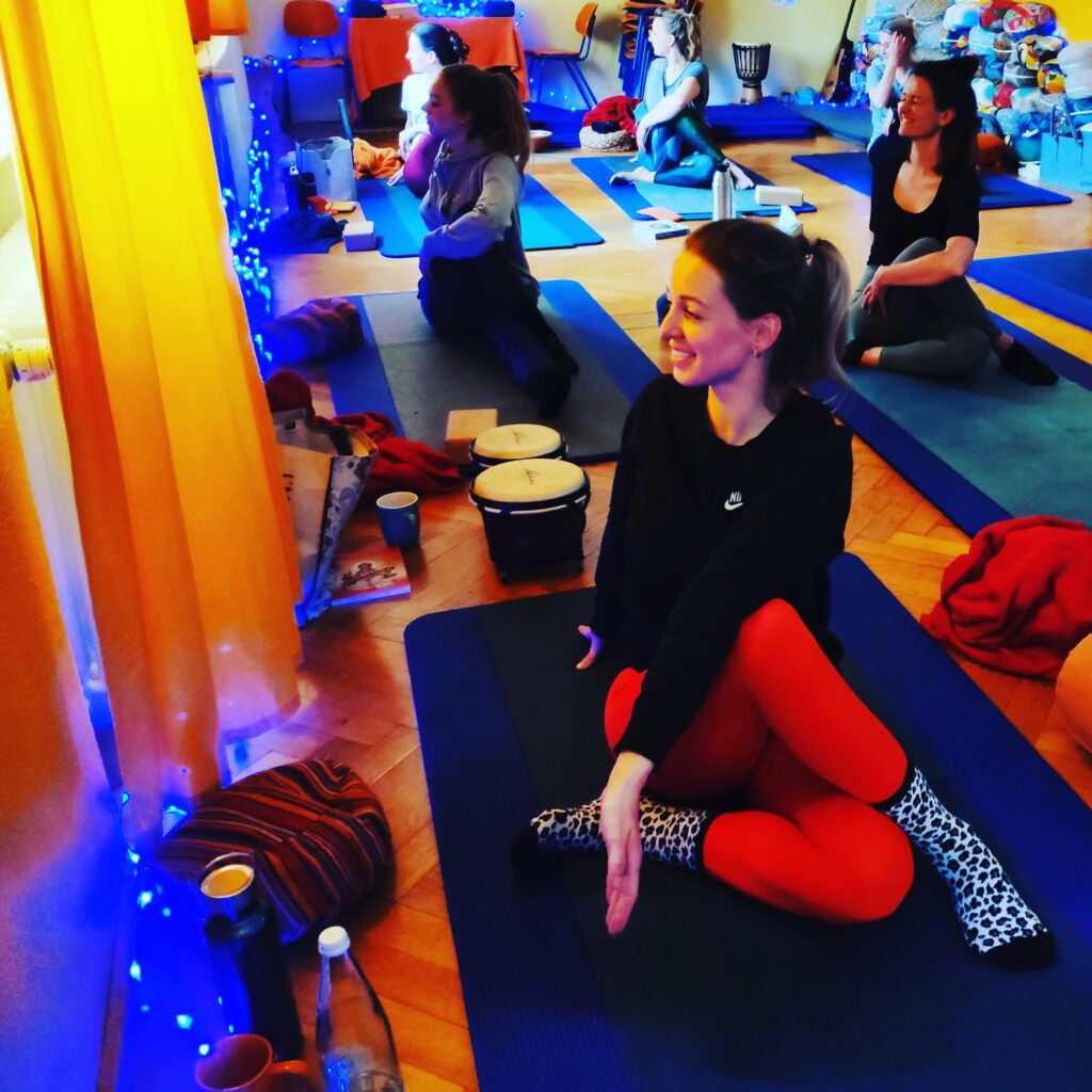 Und das nicht am Anfang oder Ende, sondern mitten im Yoga, mitten im Atem, mitten im Schütteln, mitten im Tanz, mitten in der Stille.